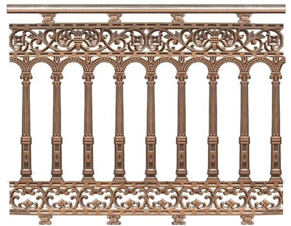 Hoa văn lan can được mài vỡ để lộ ánh đồng vàng vật liệu sản phẩm làm lên bức lan can ban công đồng đúc.