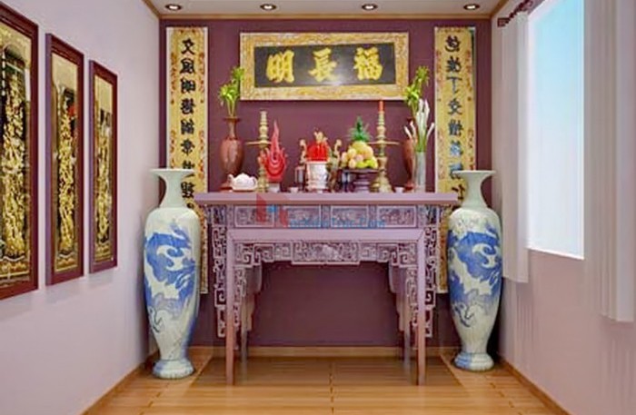 Cách treo buộn cuốn thư câu đối đồng vàng sơn đỏ 1,35m bày bàn thờ gia tiên