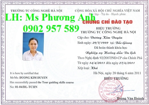 Chỗ đào tạo ngắn hạn và cấp chứng chỉ nghiệp vụ hướng dẫn viên du lịch theo Khung chương trình - Phôi chứng chỉ chuẩn.