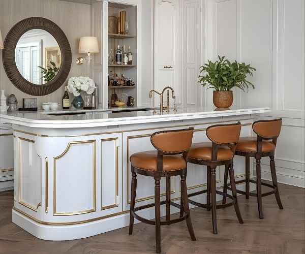 Cách phối ghế quầy bar với bàn bếp để tạo không gian sang trọng như quán cà phê